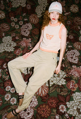 Bringing back our Queenie Vest for High Summer '24. Made from a soft merino wool, the Queenie features a Peanut base with a contrast Melon ribbing along the arm holes and neckline. Finished with a hand embroidered contrasting butterfly.