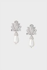 Introducing the Froggy Earrings for Autumn Winter '25. Featuring a silver-toned, diamanté encrusted frog with a clip on rubber backing and a teardrop faux pearl.