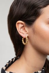 Introducing the Cosima Earrings for Autumn Winter '25. In a classic hoop design the Cosima Earrings feature a chunky twisted body and are finished with an english lock closure. Thoughtfully gift wrapped in tissue and presented in a 'Shrimps' 100% cotton branded dust bag and recyclable branded gift box.