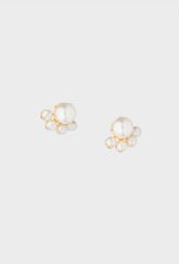 Introducing the Michi Earrings for Shrimps Bridal. In a classic stud design, the Michi Earrings feature a medium round centre faux pearl surrounded by a delicate crescent of miniature faux pearls and finished with a rubber post backing. Thoughtfully gift wrapped in tissue and presented in a 'Shrimps' 100% cotton branded dust bag and recyclable branded gift box.