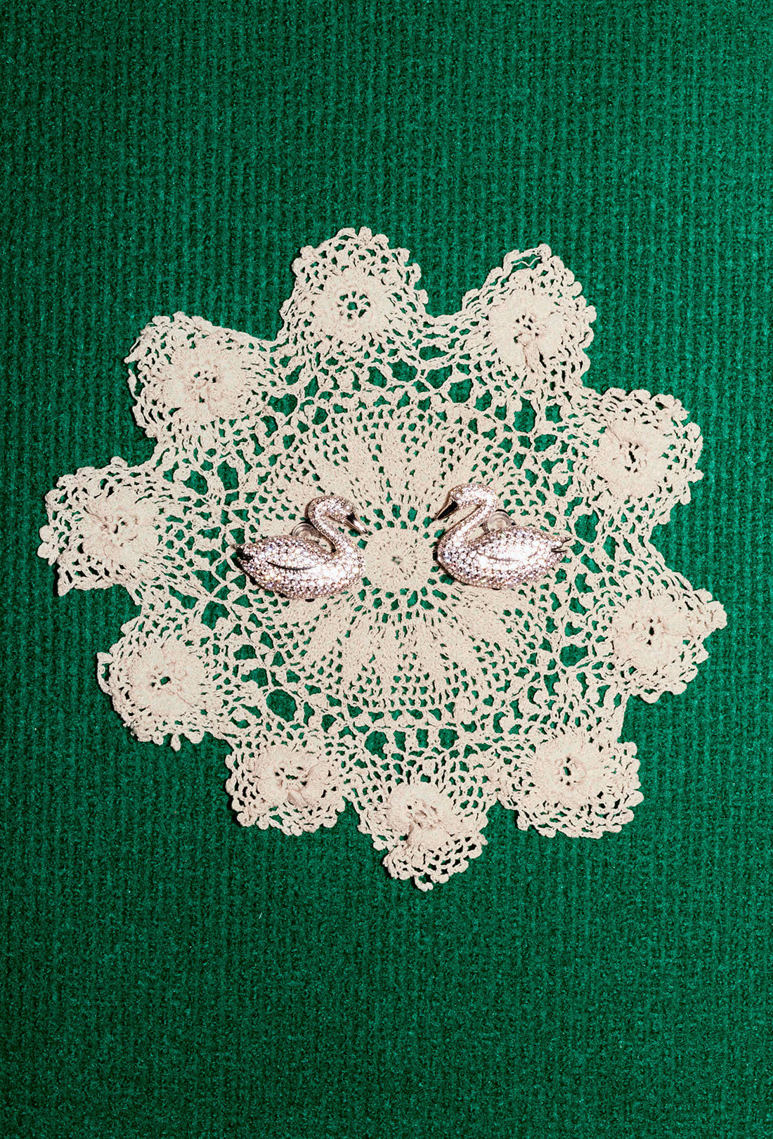 Introducing the Swan Earrings for Autumn Winter '25. Featuring a silver-toned, diamanté encrusted swan with a clip on rubber backing.