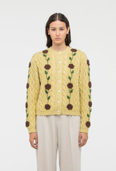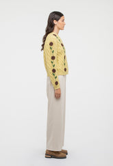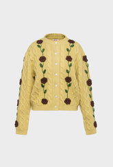 Bringing back our Minnie Cardigan for Autumn Winter '25. Crafted from super-soft merino wool, with a dusty yellow base and chocolate brown hand-embroidered rose vines.