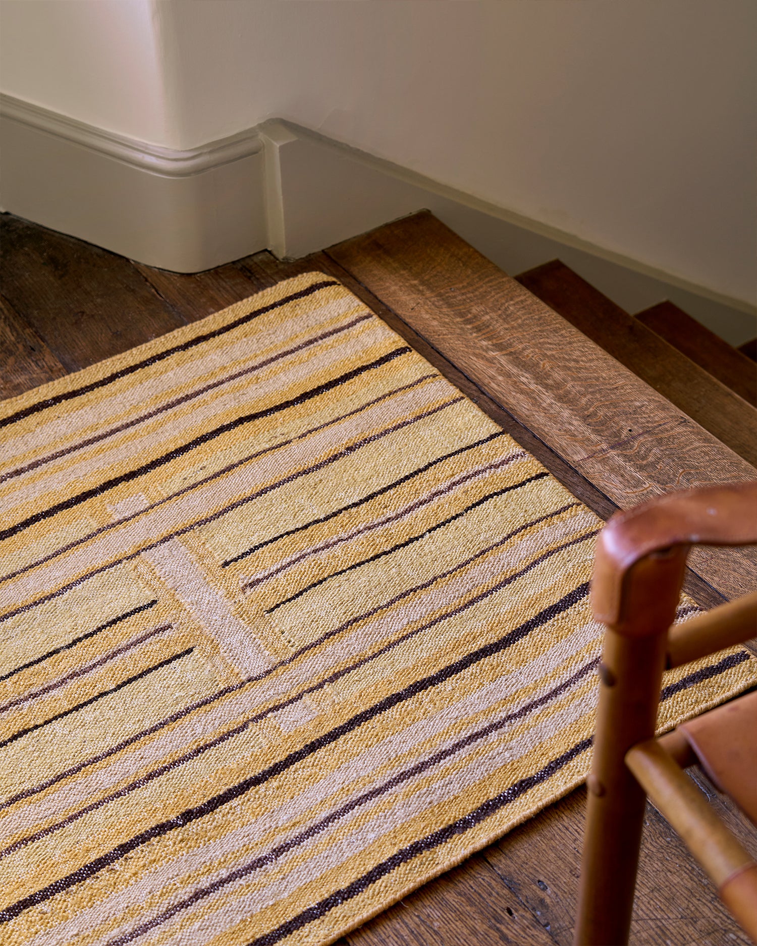 A geometric runner named after Weiland’s son, Marlowe. Playfully imagined as a piece he would joyfully run along, this Jute rug measures 3.5m in length and brings a bold, structured element to the collection.