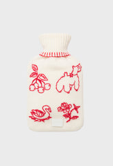 Introducing the Babette Hot Water Bottle for Autumn Winter '25. Crafted from super-soft merino wool, with a cream base and rose red hand-embroidered motifs.