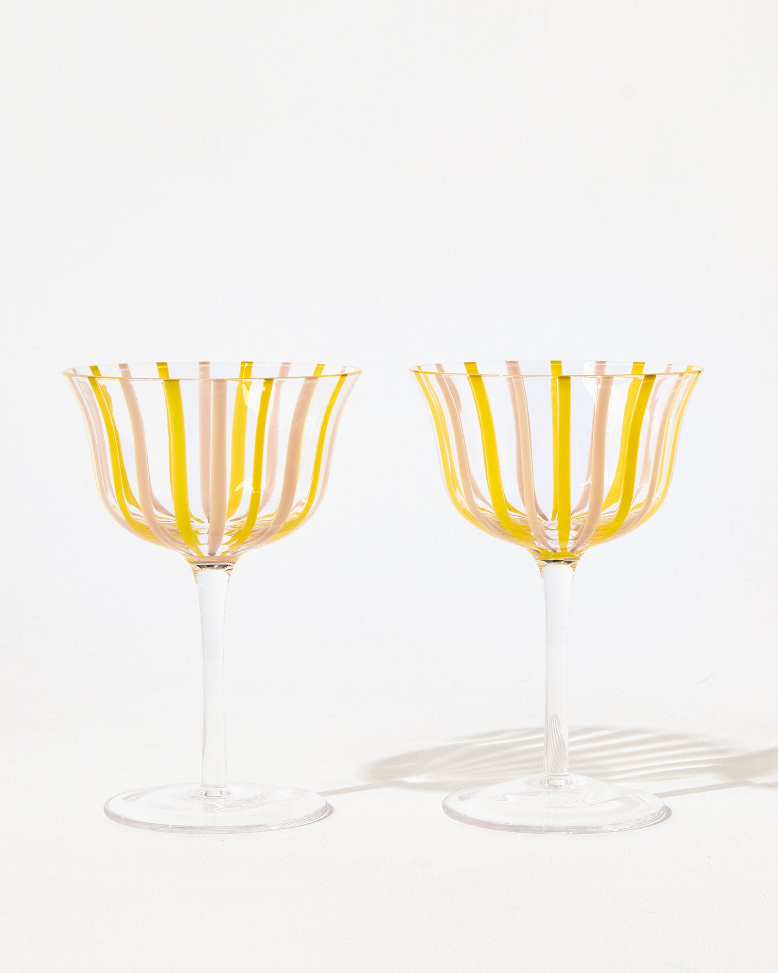 The unique and characterful 21-piece collection includes intricately designed ceramic mugs, jugs, plates, glassware and textiles, with a warm and sophisticated colour palette and soft, hand-painted stripes. Lively pops of bellini pink, acid yellow, marmalade orange and warm terracotta are balanced against a neutral backdrop that accentuates the vintage-inspired silhouettes and design details.